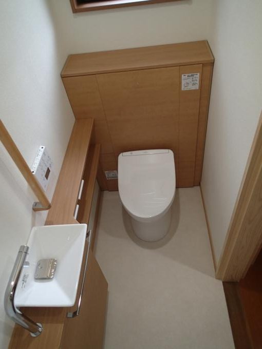 水廻り施工例1 23 12月,2018 takiguchiken 和式トイレを洋式に、収納たっぷの機能的なトイレに変身しました。廊下にも手すりを設置しました。 トイレ改修+廊下手すり 工期:約20日 総工事費用:約160万円 施工前 施工後